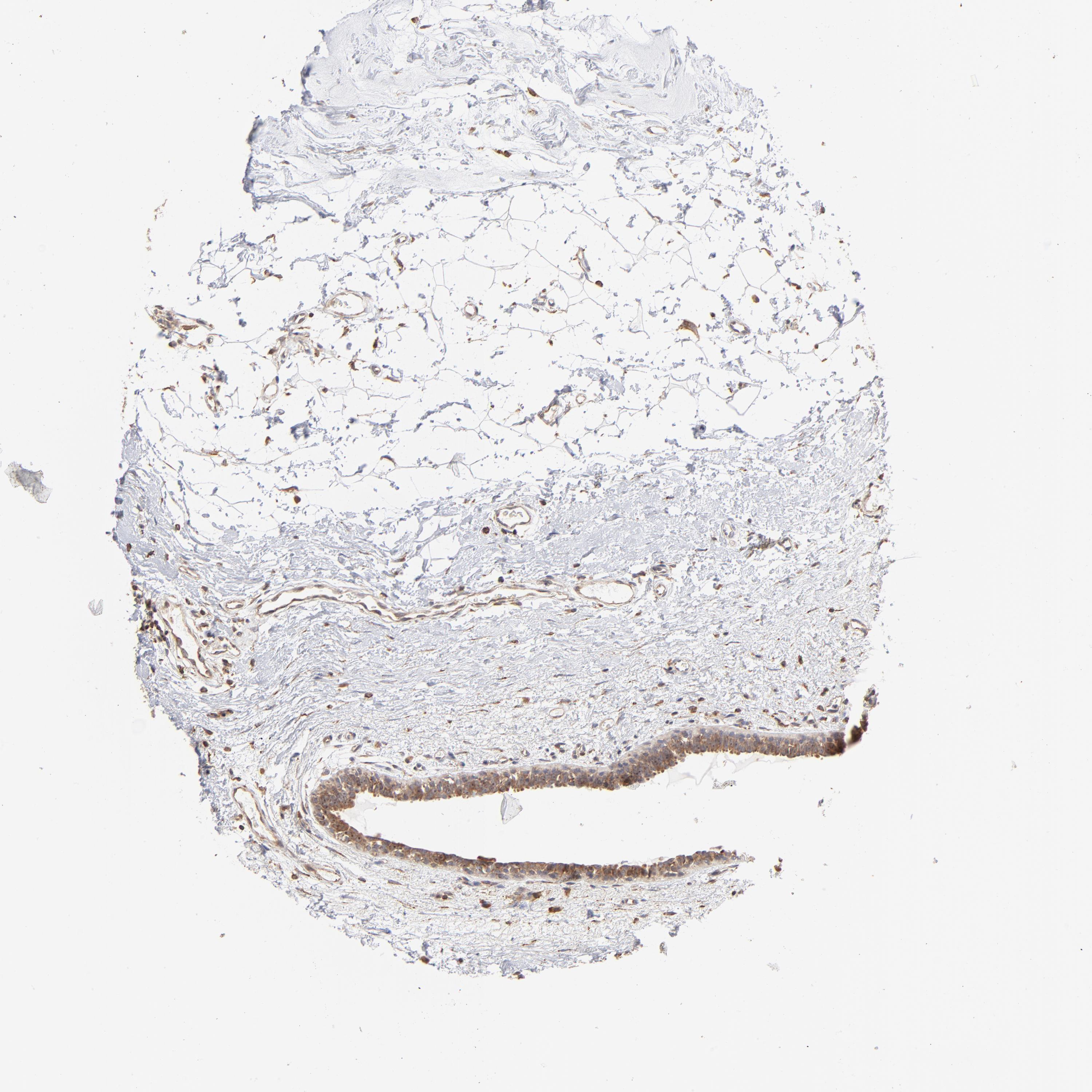 Antibody staining in the annotated cell types in the current human tissue is reported as not detected, low, medium, or high, based on conventional immunohistochemistry profiling in selected tissues. This score is based on the combination of the staining intensity and fraction of stained cells.