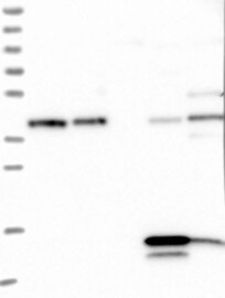 A Western blot analysis is performed on a panel of human tissues and cell lines to evaluate antibody specificity. For antibodies with unreliable result a revalidation using an over-expression lysate is performed.