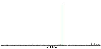 The curve in blue displays the predicted antigenicity i.e. the tendency for different regions of the protein to generate an immune response, with peak regions being predicted to be more antigenic.The curve shows average values based on a sliding window approach using an in-house propensity scale. (read more).