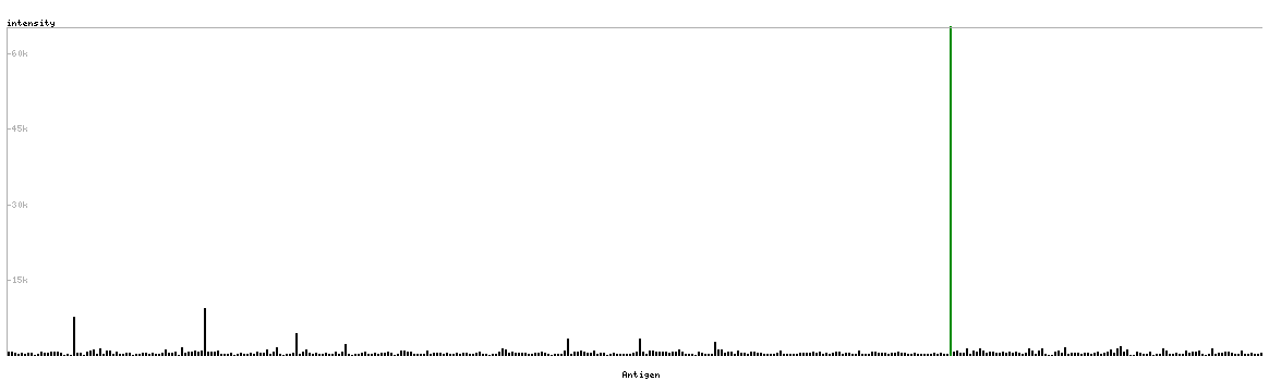The curve in blue displays the predicted antigenicity i.e. the tendency for different regions of the protein to generate an immune response, with peak regions being predicted to be more antigenic.The curve shows average values based on a sliding window approach using an in-house propensity scale. (read more).