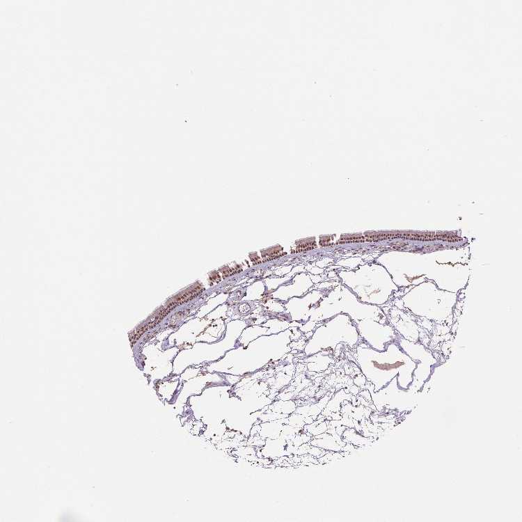 Antibody staining in the annotated cell types in the current human tissue is reported as not detected, low, medium, or high, based on conventional immunohistochemistry profiling in selected tissues. This score is based on the combination of the staining intensity and fraction of stained cells.