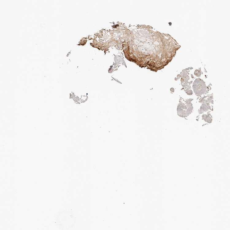 Antibody staining in the annotated cell types in the current human tissue is reported as not detected, low, medium, or high, based on conventional immunohistochemistry profiling in selected tissues. This score is based on the combination of the staining intensity and fraction of stained cells.