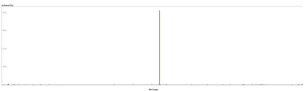 The curve in blue displays the predicted antigenicity i.e. the tendency for different regions of the protein to generate an immune response, with peak regions being predicted to be more antigenic.The curve shows average values based on a sliding window approach using an in-house propensity scale. (read more).