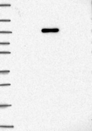 A Western blot analysis is performed on a panel of human tissues and cell lines to evaluate antibody specificity. For antibodies with unreliable result a revalidation using an over-expression lysate is performed.