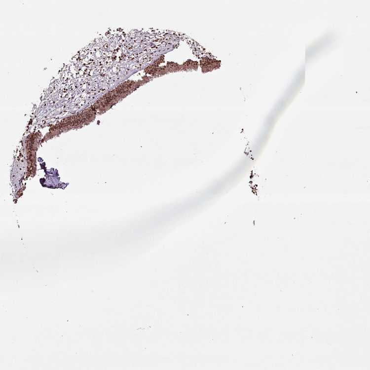 Antibody staining in the annotated cell types in the current human tissue is reported as not detected, low, medium, or high, based on conventional immunohistochemistry profiling in selected tissues. This score is based on the combination of the staining intensity and fraction of stained cells.