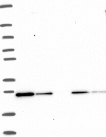 A Western blot analysis is performed on a panel of human tissues and cell lines to evaluate antibody specificity. For antibodies with unreliable result a revalidation using an over-expression lysate is performed.