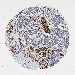 Antibody staining in the annotated cell types in the current human tissue is reported as not detected, low, medium, or high, based on conventional immunohistochemistry profiling in selected tissues. This score is based on the combination of the staining intensity and fraction of stained cells.