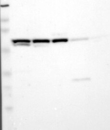 A Western blot analysis is performed on a panel of human tissues and cell lines to evaluate antibody specificity. For antibodies with unreliable result a revalidation using an over-expression lysate is performed.