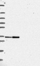 A Western blot analysis is performed on a panel of human tissues and cell lines to evaluate antibody specificity. For antibodies with unreliable result a revalidation using an over-expression lysate is performed.