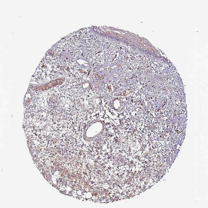 Antibody staining in the annotated cell types in the current human tissue is reported as not detected, low, medium, or high, based on conventional immunohistochemistry profiling in selected tissues. This score is based on the combination of the staining intensity and fraction of stained cells.