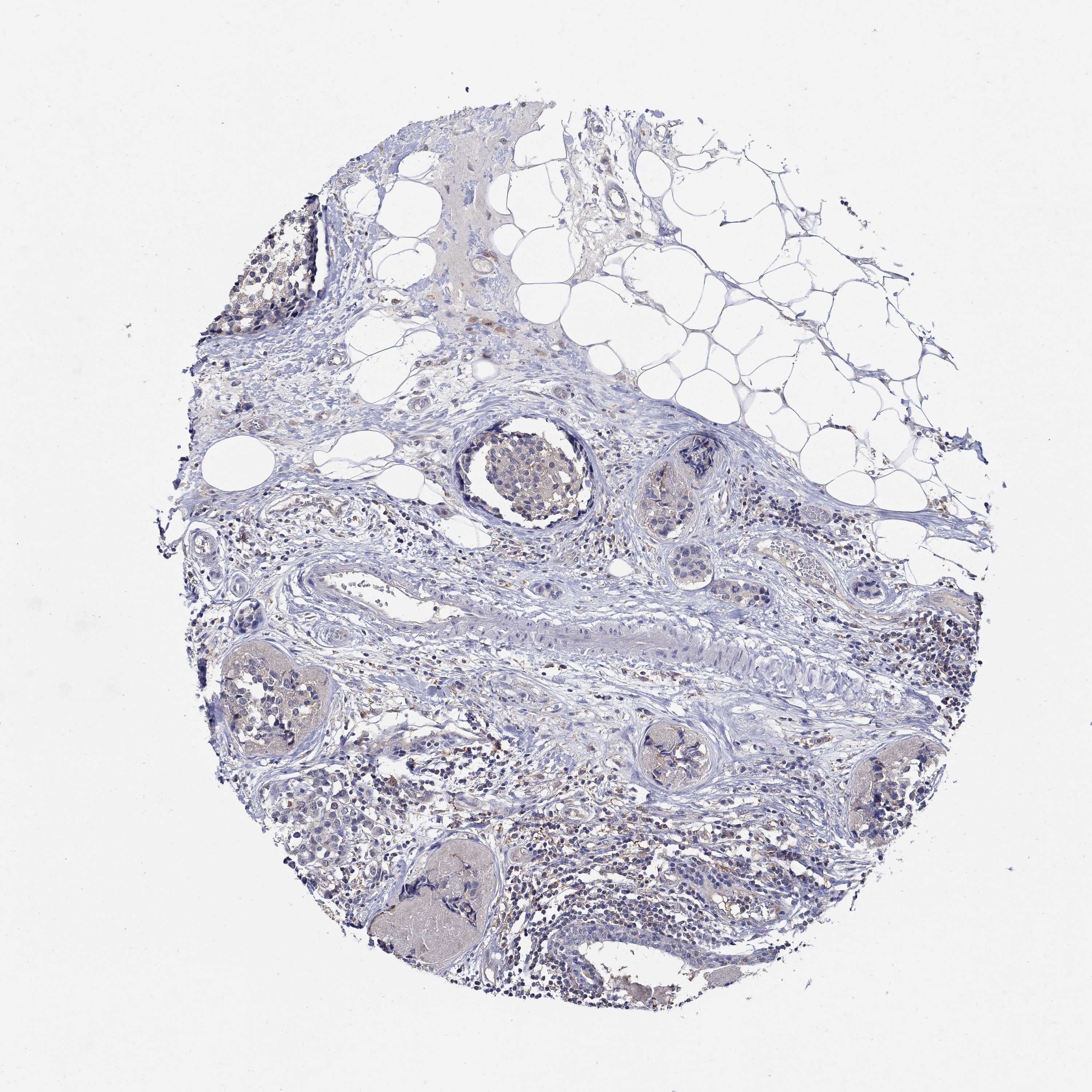 Antibody staining in the annotated cell types in the current human tissue is reported as not detected, low, medium, or high, based on conventional immunohistochemistry profiling in selected tissues. This score is based on the combination of the staining intensity and fraction of stained cells.