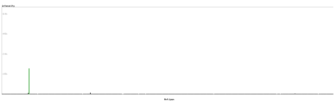 The curve in blue displays the predicted antigenicity i.e. the tendency for different regions of the protein to generate an immune response, with peak regions being predicted to be more antigenic.The curve shows average values based on a sliding window approach using an in-house propensity scale. (read more).