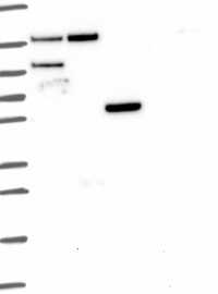A Western blot analysis is performed on a panel of human tissues and cell lines to evaluate antibody specificity. For antibodies with unreliable result a revalidation using an over-expression lysate is performed.