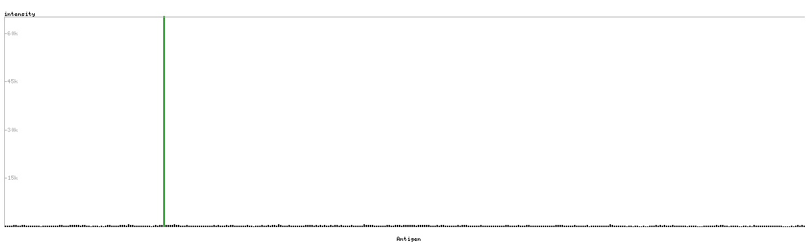 The curve in blue displays the predicted antigenicity i.e. the tendency for different regions of the protein to generate an immune response, with peak regions being predicted to be more antigenic.The curve shows average values based on a sliding window approach using an in-house propensity scale. (read more).