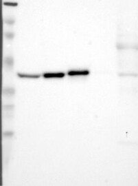A Western blot analysis is performed on a panel of human tissues and cell lines to evaluate antibody specificity. For antibodies with unreliable result a revalidation using an over-expression lysate is performed.