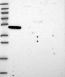 A Western blot analysis is performed on a panel of human tissues and cell lines to evaluate antibody specificity. For antibodies with unreliable result a revalidation using an over-expression lysate is performed.
