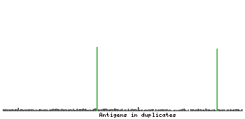 At the top of the view, the position of the antigen (identified by the corresponding HPA identifier) is shown as a green bar. A yellow triangle on the bar indicates a <100% sequence identity to the protein target.