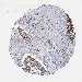 Antibody staining in the annotated cell types in the current human tissue is reported as not detected, low, medium, or high, based on conventional immunohistochemistry profiling in selected tissues. This score is based on the combination of the staining intensity and fraction of stained cells.