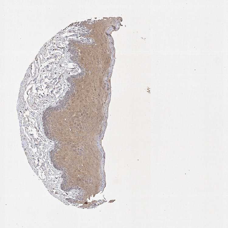 Antibody staining in the annotated cell types in the current human tissue is reported as not detected, low, medium, or high, based on conventional immunohistochemistry profiling in selected tissues. This score is based on the combination of the staining intensity and fraction of stained cells.