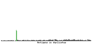 At the top of the view, the position of the antigen (identified by the corresponding HPA identifier) is shown as a green bar. A yellow triangle on the bar indicates a <100% sequence identity to the protein target.