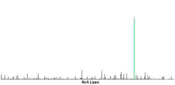The curve in blue displays the predicted antigenicity i.e. the tendency for different regions of the protein to generate an immune response, with peak regions being predicted to be more antigenic.The curve shows average values based on a sliding window approach using an in-house propensity scale. (read more).
