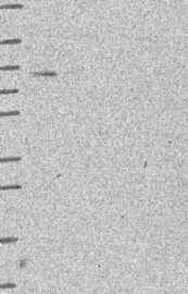 A Western blot analysis is performed on a panel of human tissues and cell lines to evaluate antibody specificity. For antibodies with unreliable result a revalidation using an over-expression lysate is performed.