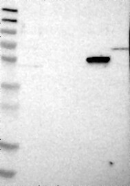 A Western blot analysis is performed on a panel of human tissues and cell lines to evaluate antibody specificity. For antibodies with unreliable result a revalidation using an over-expression lysate is performed.