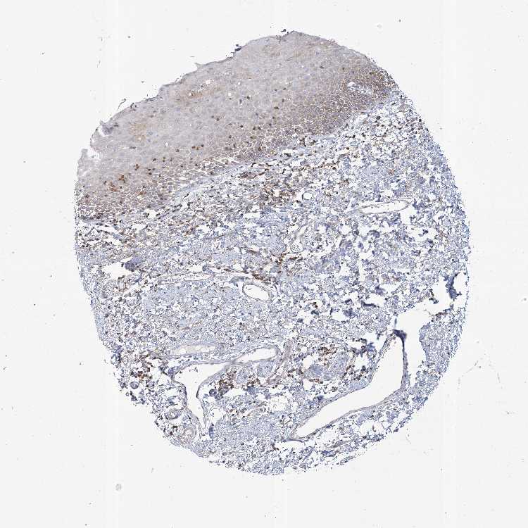 Antibody staining in the annotated cell types in the current human tissue is reported as not detected, low, medium, or high, based on conventional immunohistochemistry profiling in selected tissues. This score is based on the combination of the staining intensity and fraction of stained cells.