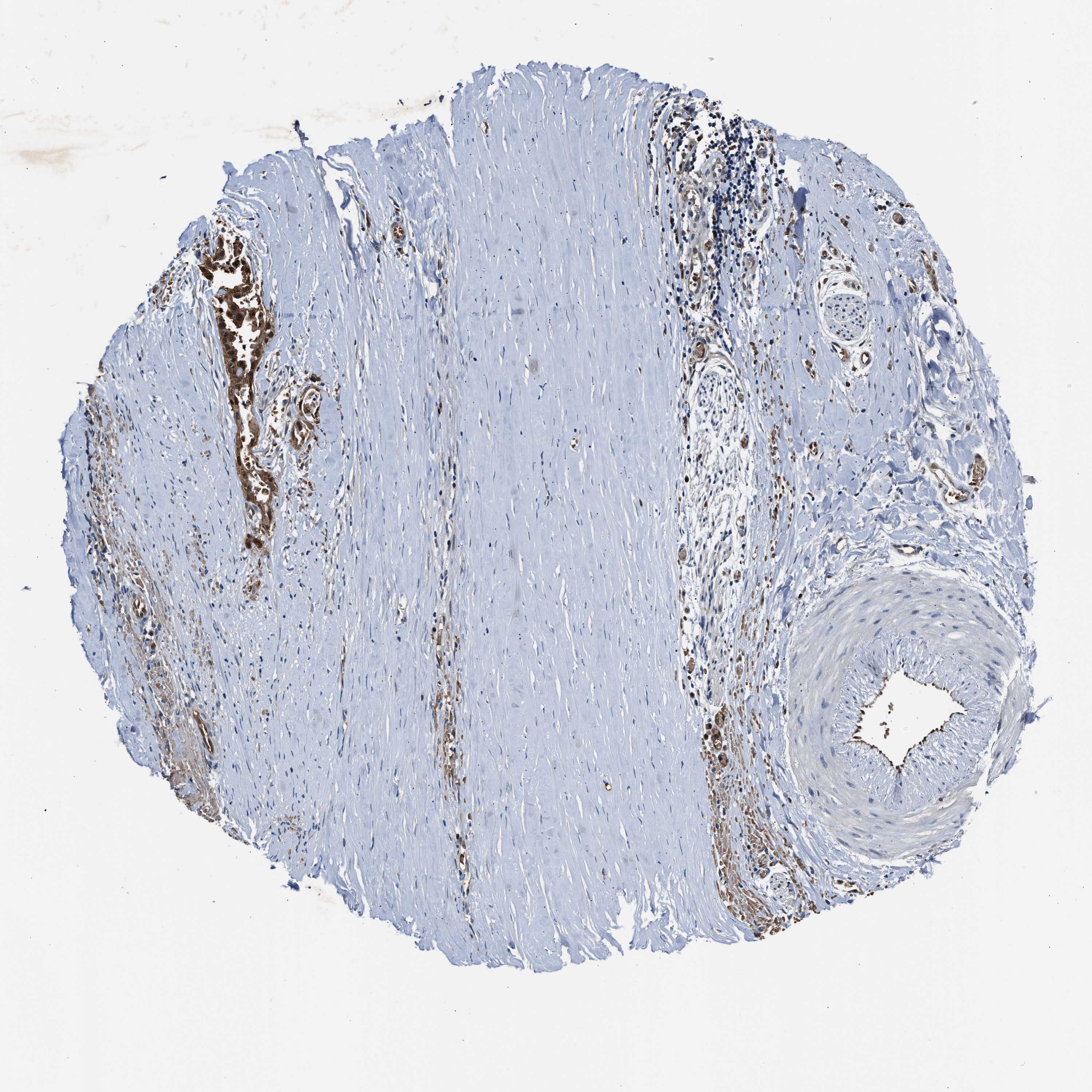 Antibody staining in the annotated cell types in the current human tissue is reported as not detected, low, medium, or high, based on conventional immunohistochemistry profiling in selected tissues. This score is based on the combination of the staining intensity and fraction of stained cells.
