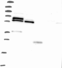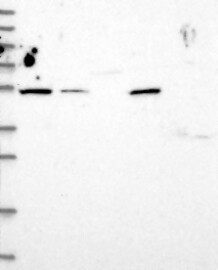 A Western blot analysis is performed on a panel of human tissues and cell lines to evaluate antibody specificity. For antibodies with unreliable result a revalidation using an over-expression lysate is performed.