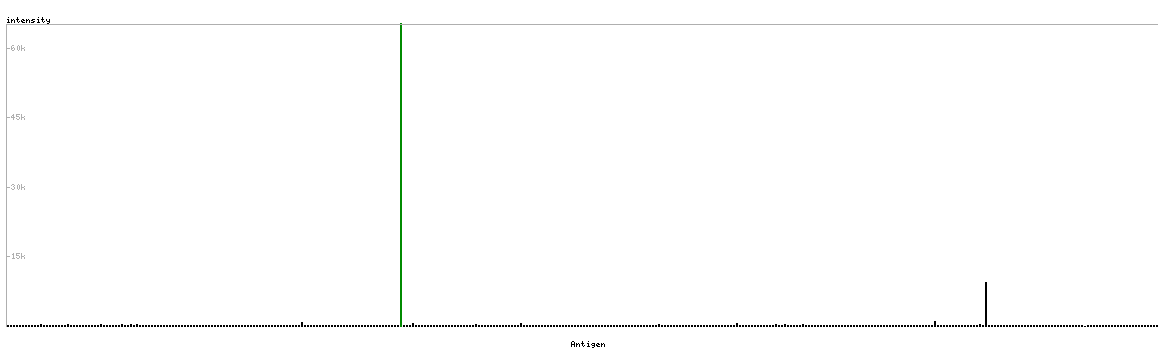 The curve in blue displays the predicted antigenicity i.e. the tendency for different regions of the protein to generate an immune response, with peak regions being predicted to be more antigenic.The curve shows average values based on a sliding window approach using an in-house propensity scale. (read more).