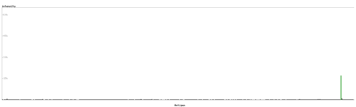 The curve in blue displays the predicted antigenicity i.e. the tendency for different regions of the protein to generate an immune response, with peak regions being predicted to be more antigenic.The curve shows average values based on a sliding window approach using an in-house propensity scale. (read more).