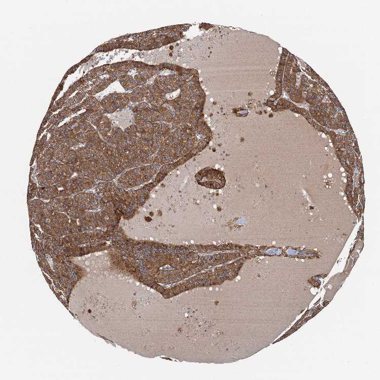Antibody staining in the annotated cell types in the current human tissue is reported as not detected, low, medium, or high, based on conventional immunohistochemistry profiling in selected tissues. This score is based on the combination of the staining intensity and fraction of stained cells.