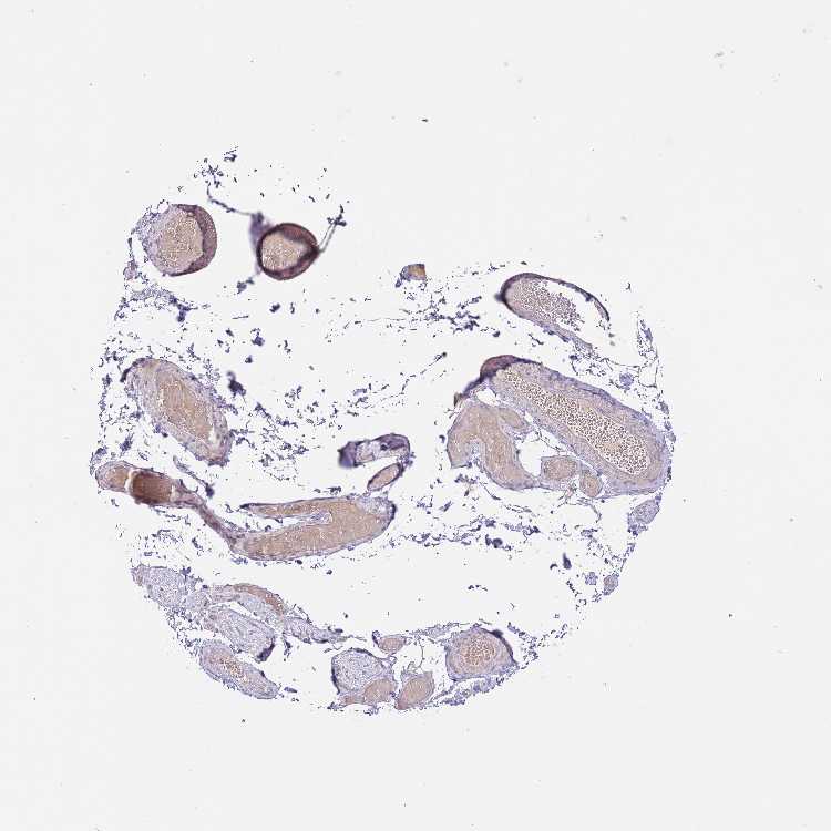 Antibody staining in the annotated cell types in the current human tissue is reported as not detected, low, medium, or high, based on conventional immunohistochemistry profiling in selected tissues. This score is based on the combination of the staining intensity and fraction of stained cells.
