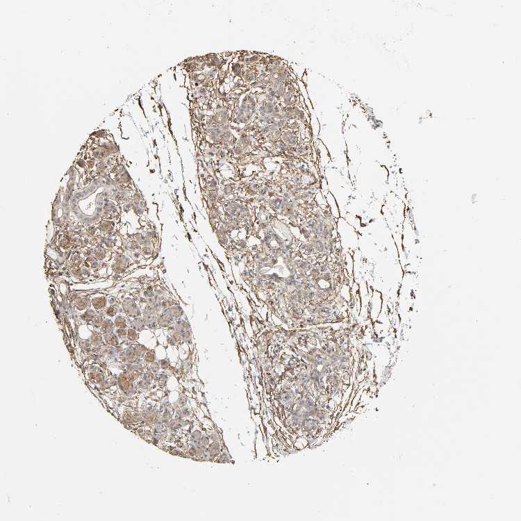 Antibody staining in the annotated cell types in the current human tissue is reported as not detected, low, medium, or high, based on conventional immunohistochemistry profiling in selected tissues. This score is based on the combination of the staining intensity and fraction of stained cells.