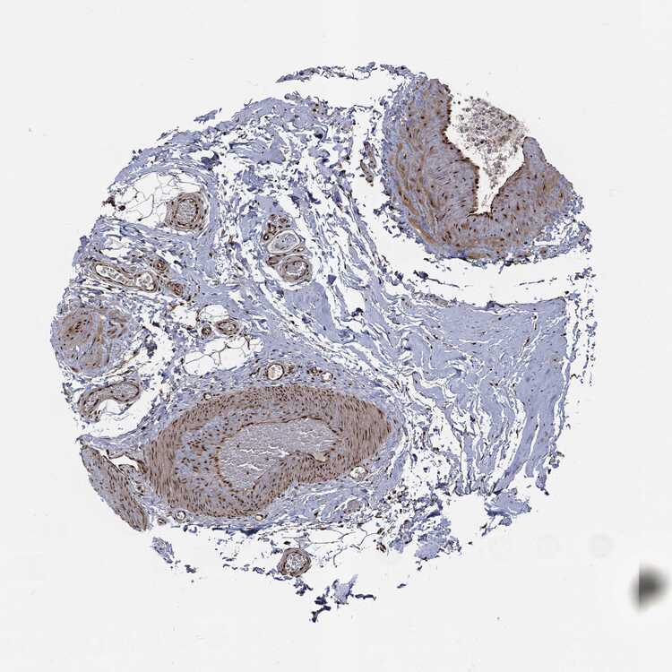 Antibody staining in the annotated cell types in the current human tissue is reported as not detected, low, medium, or high, based on conventional immunohistochemistry profiling in selected tissues. This score is based on the combination of the staining intensity and fraction of stained cells.