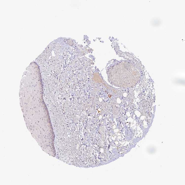 Antibody staining in the annotated cell types in the current human tissue is reported as not detected, low, medium, or high, based on conventional immunohistochemistry profiling in selected tissues. This score is based on the combination of the staining intensity and fraction of stained cells.