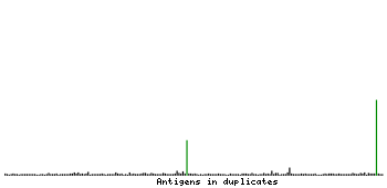 At the top of the view, the position of the antigen (identified by the corresponding HPA identifier) is shown as a green bar. A yellow triangle on the bar indicates a <100% sequence identity to the protein target.
