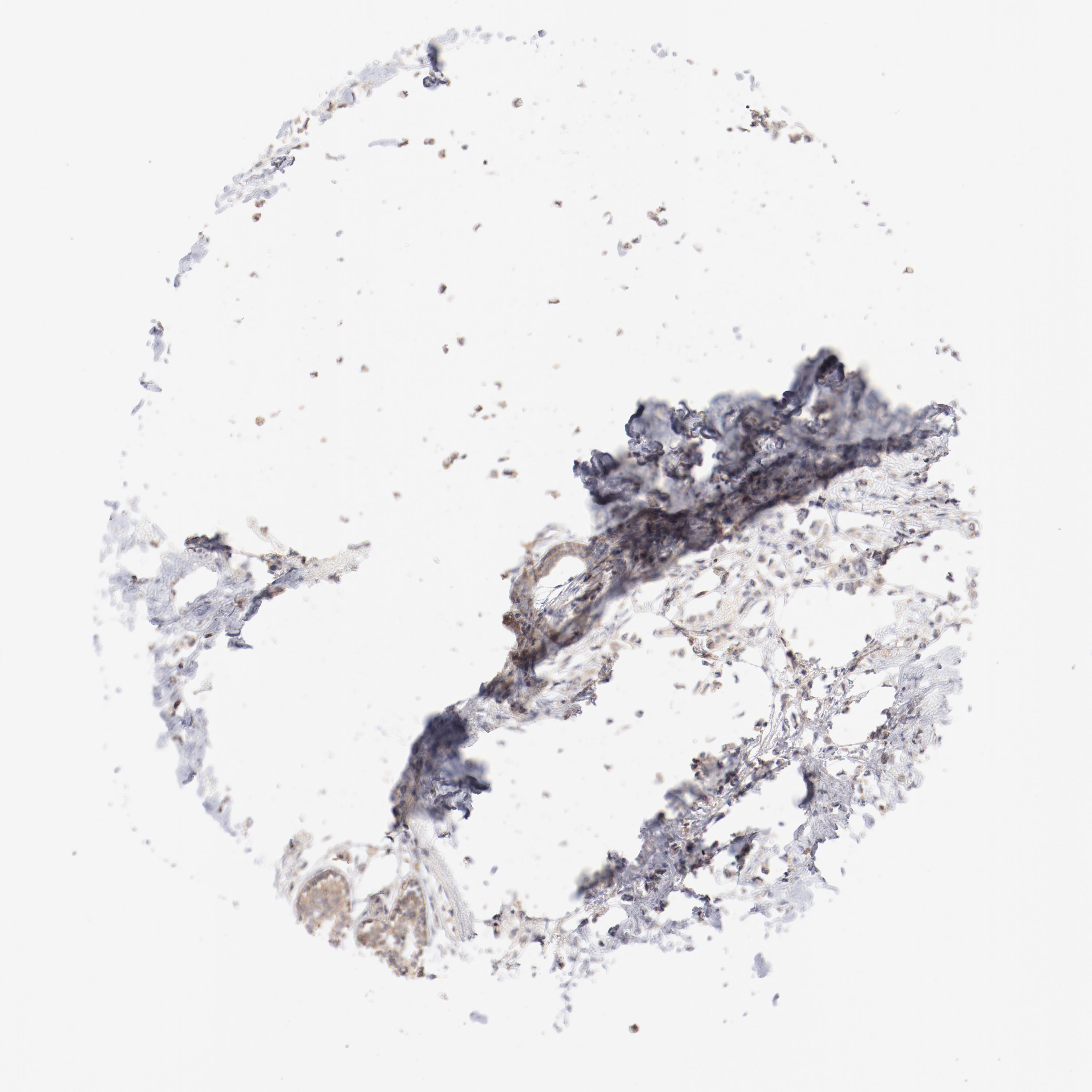 Antibody staining in the annotated cell types in the current human tissue is reported as not detected, low, medium, or high, based on conventional immunohistochemistry profiling in selected tissues. This score is based on the combination of the staining intensity and fraction of stained cells.