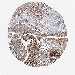 Antibody staining in the annotated cell types in the current human tissue is reported as not detected, low, medium, or high, based on conventional immunohistochemistry profiling in selected tissues. This score is based on the combination of the staining intensity and fraction of stained cells.
