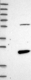 A Western blot analysis is performed on a panel of human tissues and cell lines to evaluate antibody specificity. For antibodies with unreliable result a revalidation using an over-expression lysate is performed.