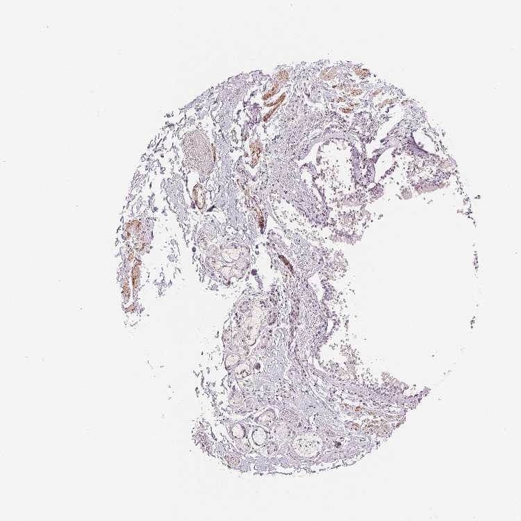 Antibody staining in the annotated cell types in the current human tissue is reported as not detected, low, medium, or high, based on conventional immunohistochemistry profiling in selected tissues. This score is based on the combination of the staining intensity and fraction of stained cells.