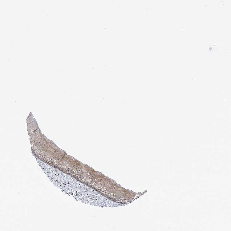 Antibody staining in the annotated cell types in the current human tissue is reported as not detected, low, medium, or high, based on conventional immunohistochemistry profiling in selected tissues. This score is based on the combination of the staining intensity and fraction of stained cells.