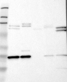 A Western blot analysis is performed on a panel of human tissues and cell lines to evaluate antibody specificity. For antibodies with unreliable result a revalidation using an over-expression lysate is performed.