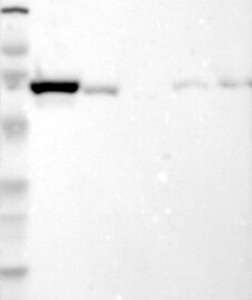 A Western blot analysis is performed on a panel of human tissues and cell lines to evaluate antibody specificity. For antibodies with unreliable result a revalidation using an over-expression lysate is performed.
