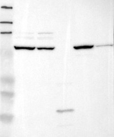 A Western blot analysis is performed on a panel of human tissues and cell lines to evaluate antibody specificity. For antibodies with unreliable result a revalidation using an over-expression lysate is performed.