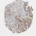 Antibody staining in the annotated cell types in the current human tissue is reported as not detected, low, medium, or high, based on conventional immunohistochemistry profiling in selected tissues. This score is based on the combination of the staining intensity and fraction of stained cells.