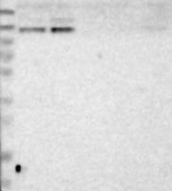 A Western blot analysis is performed on a panel of human tissues and cell lines to evaluate antibody specificity. For antibodies with unreliable result a revalidation using an over-expression lysate is performed.
