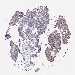 Antibody staining in the annotated cell types in the current human tissue is reported as not detected, low, medium, or high, based on conventional immunohistochemistry profiling in selected tissues. This score is based on the combination of the staining intensity and fraction of stained cells.