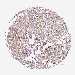 Antibody staining in the annotated cell types in the current human tissue is reported as not detected, low, medium, or high, based on conventional immunohistochemistry profiling in selected tissues. This score is based on the combination of the staining intensity and fraction of stained cells.